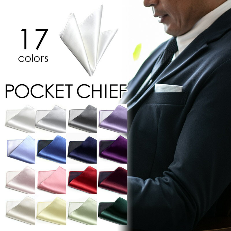 ポケットチーフ 結婚式に シルク 無地 全17色 日本製 同色の ネクタイ と セット でどうぞ♪ 白・ピンク・赤・パープル・シルバーなどカラー多数 パーティ