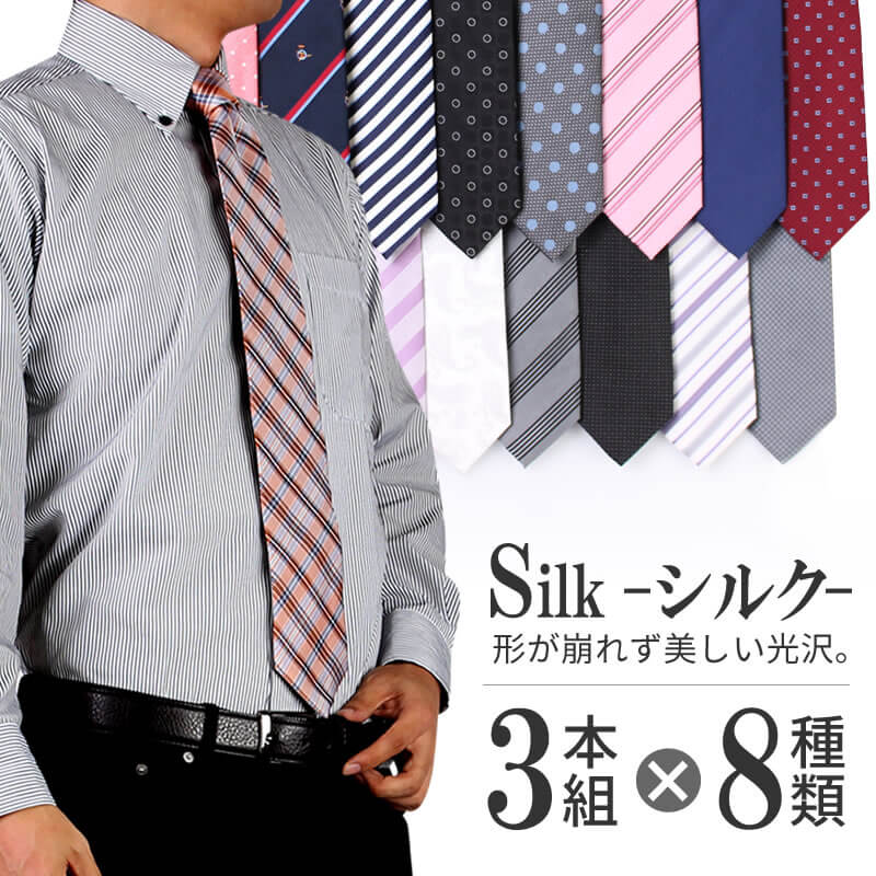 【全品送料無料】ネクタイ ビジネス フォーマル 上品 シルク100% 3種類1セット オシャレ パターン豊富 カラー豊富 おしゃれ 仕事 男前 ビジネスマン necktie 支度 スーツ タイプ豊富 高級 シルク レギュラー