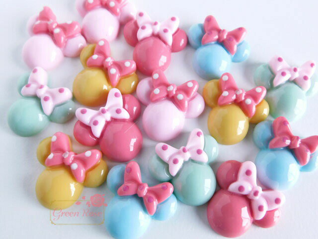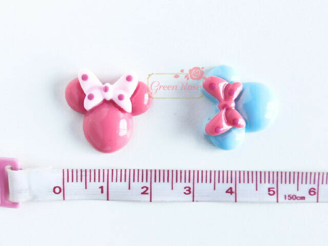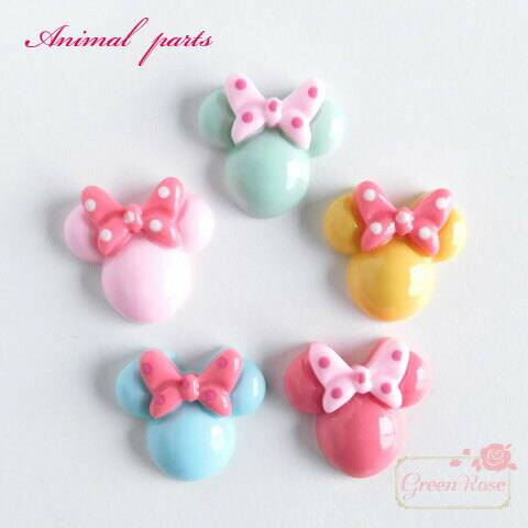 水玉リボン付ねずみパーツ 5色 50個/ネズミ/マウス/アニマル/動物/ネックレス/ブレスレット/ヘアゴム プラスチック/ハンドメイド/手芸/ヘアアクセ/ブローチ/パーツ/YM1-1373