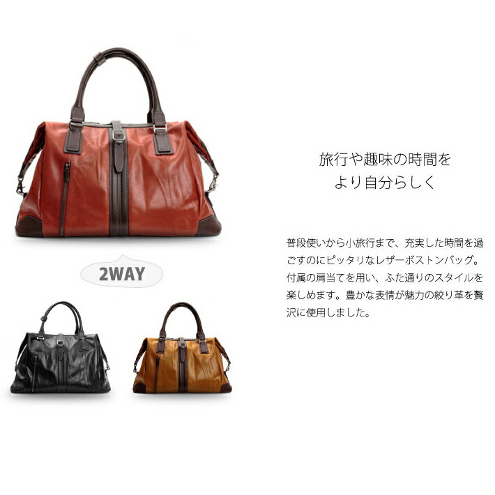 商品名 ARTPHERE(アートフィアー) ボストンバッグ 商品番号 BK15-106 素材 (本体)牛革 (付属)牛革 (裏地)ナイロンジャカード カラー ブラック/キャメル サイズ 約W(幅)480×H(高さ)280×D(マチ)160mm 仕様 【内 装】マジックテープ式クッションポケット×1 ファスナーポケット×1 【外装前】ファスナーポケット×1 重量 約1450g その他 モバイル機器収納ポケットを装備 生産国 日本(豊岡 日本製) 検索キー リュックサック,デイパック,ブラック,レザー,本革,馬革,革,リュック,大きい,ipad,タブレット,PCバッグ,黒,ブラック,メンズ,レディース,男女兼用,macbook,おしゃれ,ラグジュアリー,旅行,次なる高み「アンビション」に相応しい充実したスペック アンティック感が魅力の絞り革を使用したレザーシリーズ。